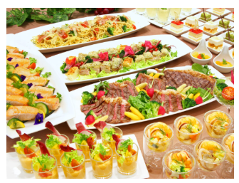 華やかな料理の数々とホテルのエレガントなサービススタッフの動きは要チェック!